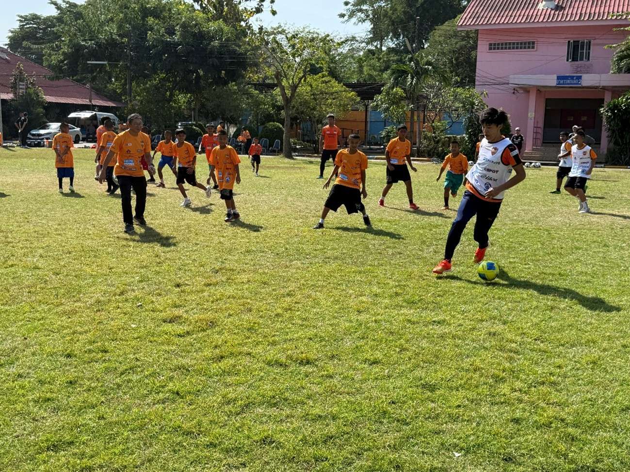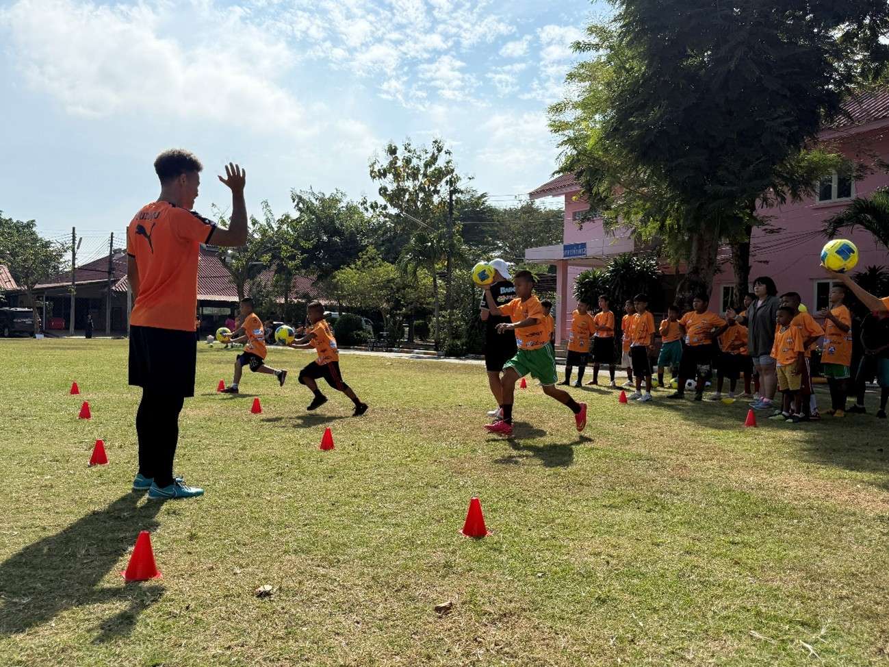 昨年に続き、タイにおけるCSR活動(社会貢献)の一環として、ご協賛パートナーのご協力のもと、現地児童養護施設の子供たちを招待してサッカークリニックを実施しました。住吉ジェラニレショーン選手と高橋利樹選手、伊東輝悦アンバサダー、土田陸斗コーチが参加しました。今回のクリニックでは各施設へペナントや缶詰め(サイアムホテイ・プランブリホテイ様提供)、ボール等を贈呈しました。