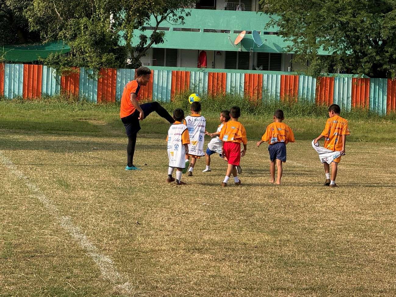 フットボールクリニック開催初日となった12月13日(土)は、バンコク市街から車で40分程移動し、ノンタブリー県「バーン・プミウェート児童養護施設」に協力いただき、41名の子どもたちを対象にクリニックを実施しました。2班に分けて、おにごっこで体をほぐしながらアイスブレイクを行いました。ドリブルリレーや競争を取り入れながら勝負を楽しんでいました。鈴与タイランドとサイアムホテイ・プランブリホテイ従業員の皆様にもご参加いただきゲーム形式を楽しみました。ゲーム形式では髙橋選手がドリブルで何人も抜きゴールに迫ったり、住吉選手が複数人囲まれてもボールキープたりプロのプレイを間近で見ながら参加した全員で対戦大いに盛り上がりました。
