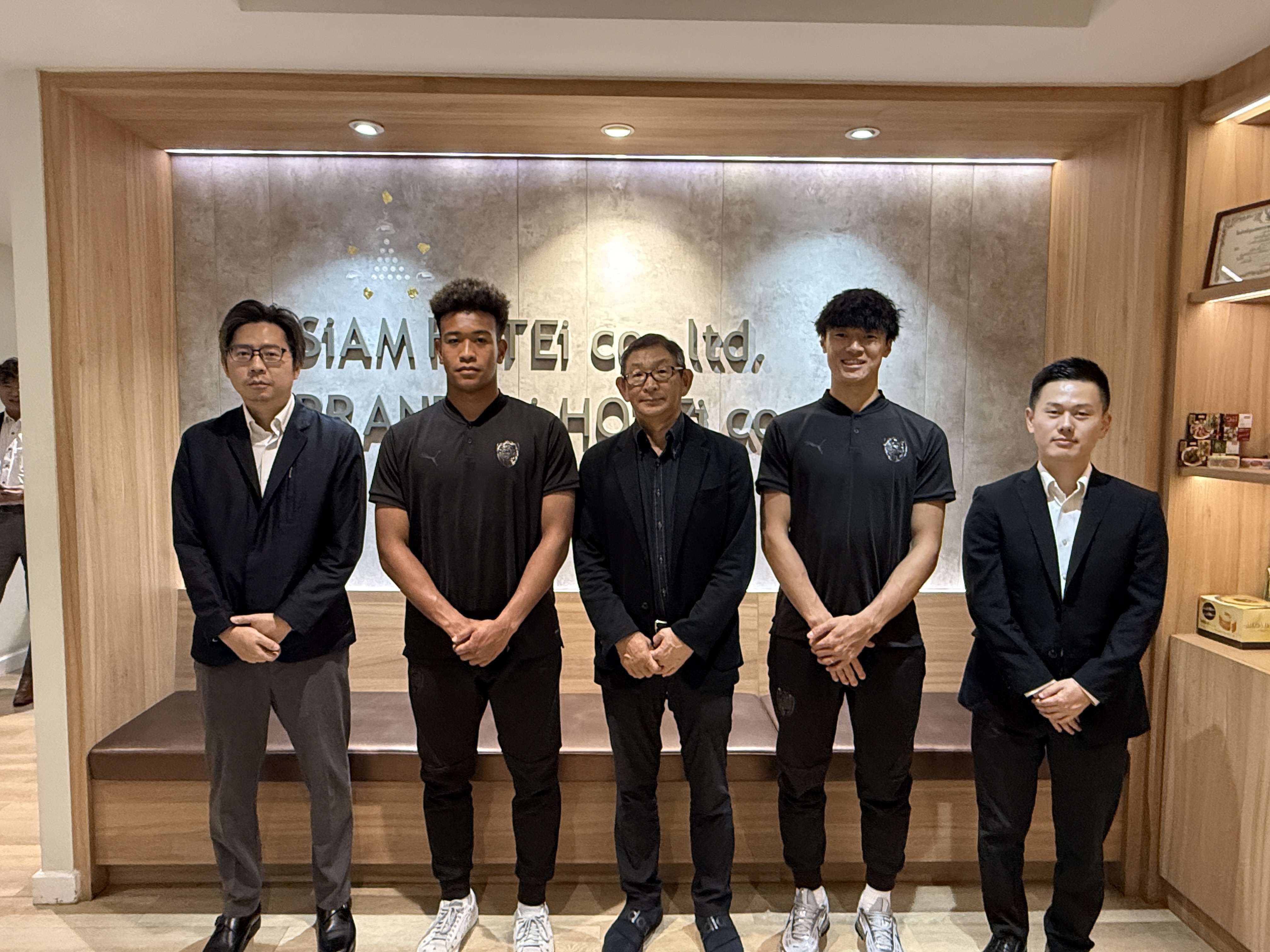 到着したその日、住吉ジェラニレショーン選手、髙橋利樹選手、伊東輝悦アンバサダーと共に鈴与タイランド様、ワールドパックシステム様、サイアムホテイ様、プランブリホテイ様へ表敬訪問をいたしました。表敬訪問した各社から、タイでの事業内容や本企画を通じた今後の事業展開などについてお話をいただきました。各社から激励の言葉をいただき、サイアムホテイ、プランブリホテイからは各施設への贈呈品として缶詰をいただきました。