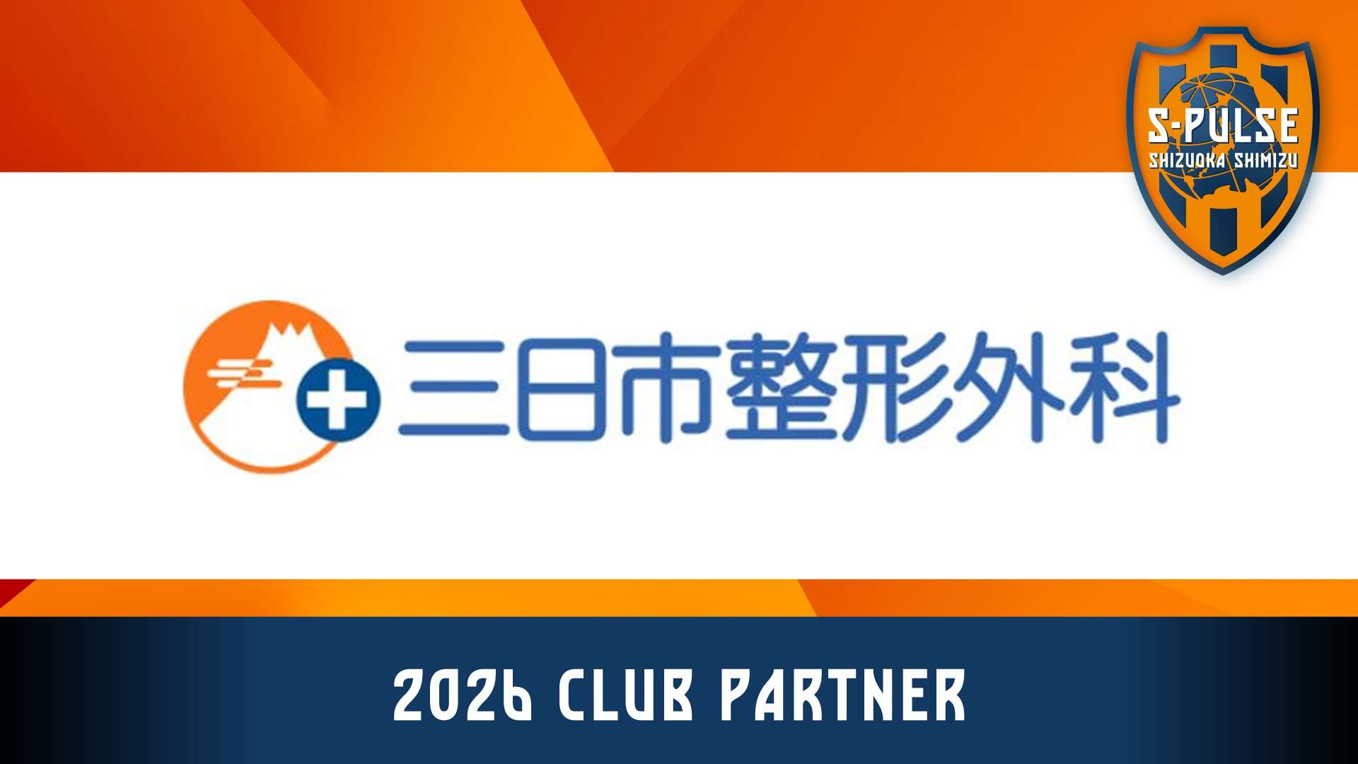 エスパルスは、三日市整形外科とクラブパートナー契約を締結し、百年構想リーグも引き続きご支援いただくこととなりましたので、下記の通りお知らせいたします。