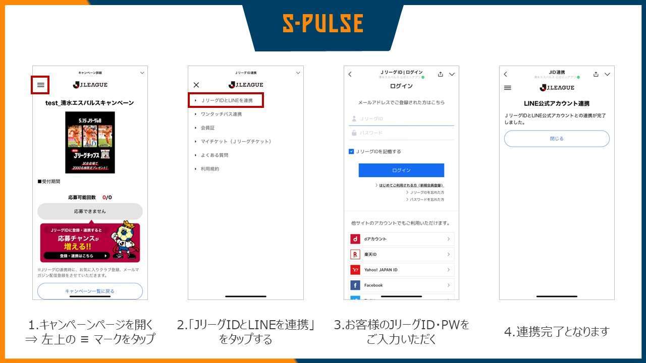 ※清水エスパルス公式LINEから応募される際、JリーグIDとの連携が必須となります。