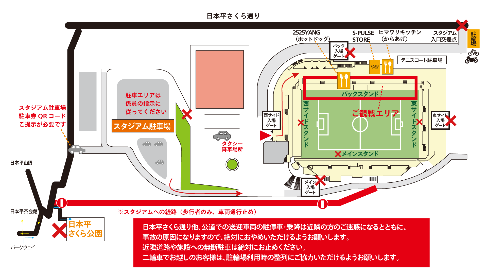 IAIスタジアム日本平内バスロータリーまでご入場が可能です。