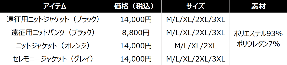 遠征用ニットジャケット・ニットパンツ(ブラック)