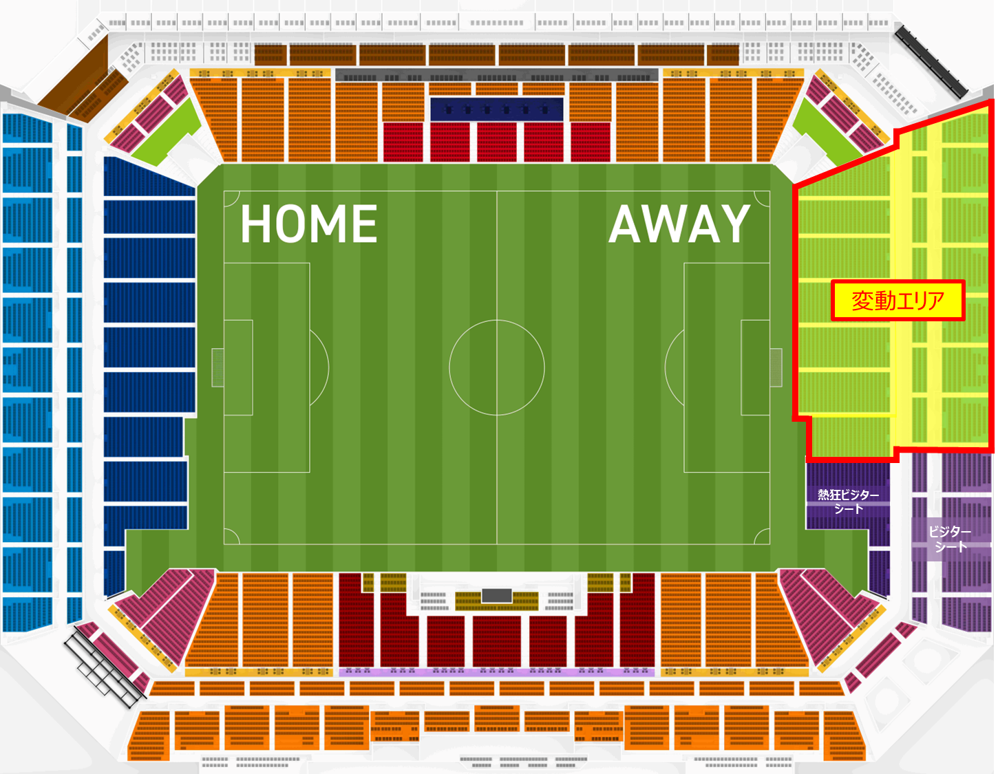 ※変動エリアは販売状況に応じてアウェイエリアもしくはCシートとして販売いたします