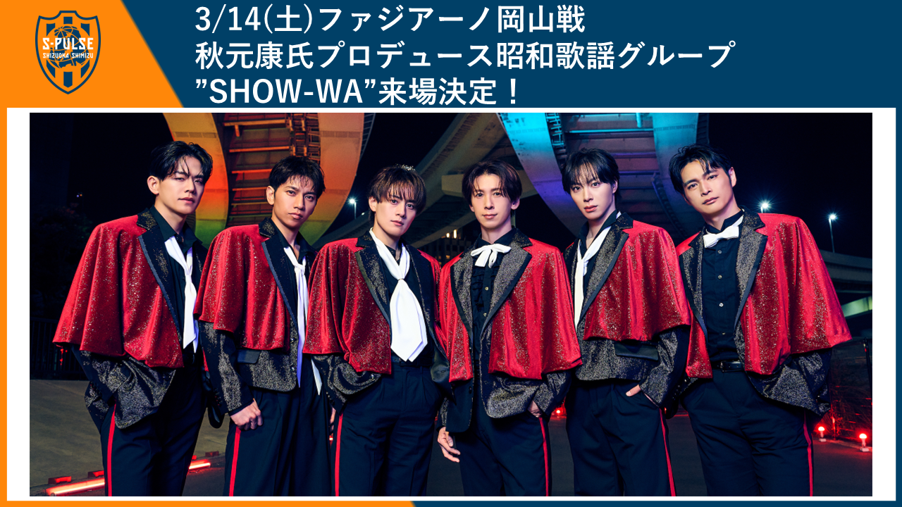 3月14日(土)ファジアーノ岡山戦にて、百年構想リーグ中のイベントとして開催している「オレフェス-タイムトラベル-」企画のゲストとして、第67回(2025年)日本レコード大賞 新人賞を受賞した、フジテレビ系"ぽかぽか"出演でおなじみの秋元康氏プロデュース昭和歌謡グループ”SHOW-WA”にご来場いただくことになりました。