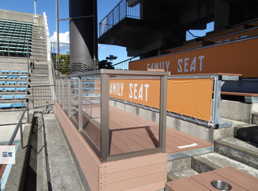お子様がいる家族(ファミリー)で観戦される方向けの指定席です。座席にはテーブル・ドリンクホルダーが完備されており、ゆっくり家族で観戦できます。また、前列にはキッズスペースがあり、お子様を遊んでいる様子を見ながら試合観戦することが可能です。東サイトゴール裏1Fに位置しており、ゴールの迫力を間近で体感できます。