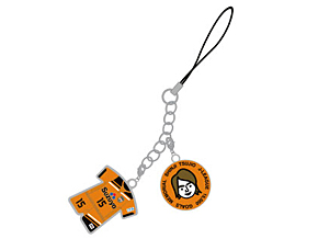 ▲辻尾真二選手『Jリーグ通算15,000ゴール記録』記念ストラップ(表) <br>サイズ:丸/直径25㎜、ユニフォーム/高さ30㎜ <br>素材:真鍮、塩ビ ©︎︎︎S-PULSE