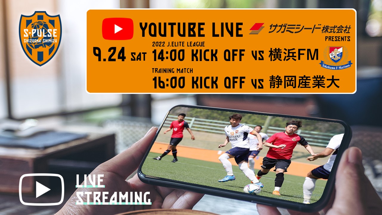 9/24『サガミシード presents YouTubeライブ ー 2022 Jエリートリーグ 清水エスパルス vs. 横浜F・マリノス / トレーニングマッチ 清水エスパルス vs. 静岡産業大学 -』 実施のお知らせ