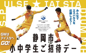 【湘南戦締切は5/7(月)12:00】<br>4/28(土)柏戦、5/12(土)湘南戦 静岡市小中学生招待企画実施のお知らせ