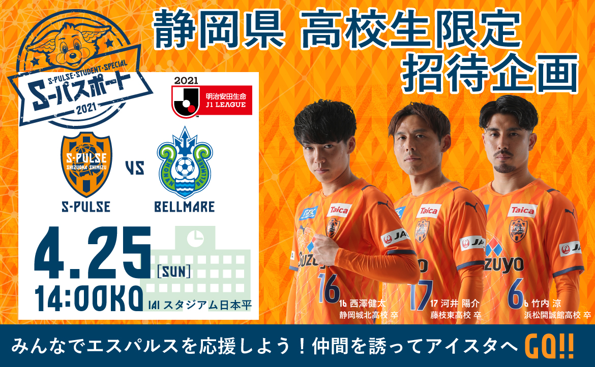 4/25(日) 湘南ベルマーレ戦 静岡県高校生限定 招待企画実施のお知らせ