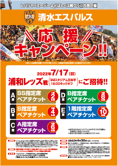 応募締切間近】ヒバリヤ・スーパーよどばし×エスエスケイフーズ×清水食品共同企画 『SSK商品を買って当てよう!清水エスパルス観戦チケット!キャンペーン』実施のお知らせ