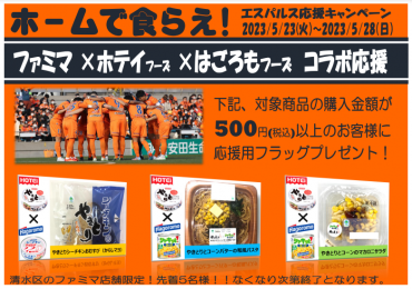 ファミリーマート×ホテイフーズ×はごろもフーズ共同企画『清水エスパルス応援キャンペーン~ホームゲームを盛り上げよう!!~』のお知らせ
