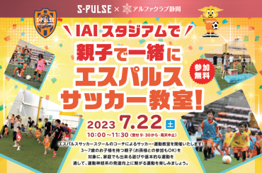 ★参加者募集★7月22日(土)アルファクラブ静岡×エスパルス 『親子で一緒にエスパルスサッカー教室』開催のお知らせ≪IAIスタジアム日本平≫