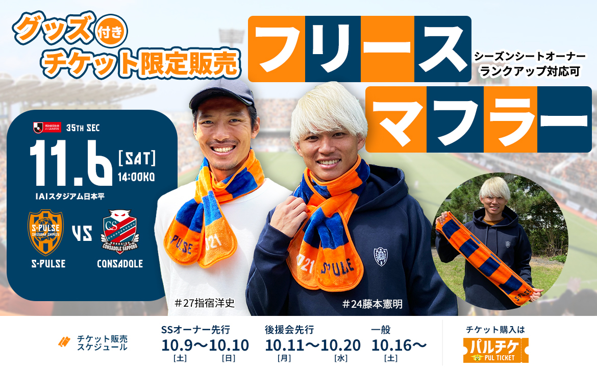 11/6(土)北海道コンサドーレ札幌戦『グッズ付きチケット(フリースマフラー)』発売のお知らせ