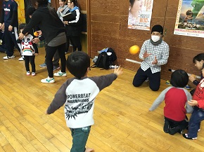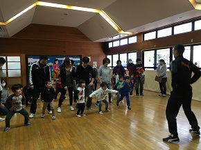 2015年度最後の教室は美和児童館で行い、私と朱コーチ、ユカコーチの3人のエスパルスコーチで行いました。