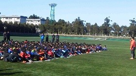 このキャンプは、Jクラブのスクール生3~6年生が一同に集まり、大会を行います。今年は、横浜Fマリノス、鹿島アントラーズ、川崎フロンターレ、FC東京、横浜FC、大宮アルディージャ、清水エスパルスの7チームで開催されました。エスパルスからは、駿東・富士・清水・静岡・藤枝から、3~6年生98名が参加してくれました。