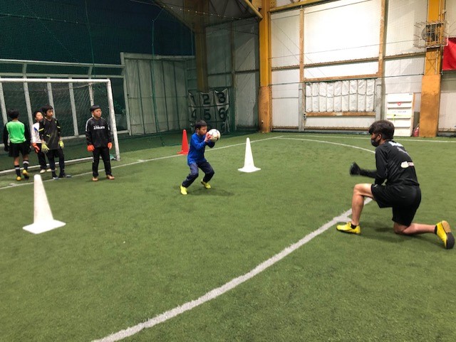 そうすると、マーカーやコーンの位置を自分で変えてみたり、自分のイメージしているドリブルをするためにマーカーを置いてみたり、ミニゴールの位置を自分たちで広げてみたり、と少しずつ選手たちが自分たちで行動するようになってきました。