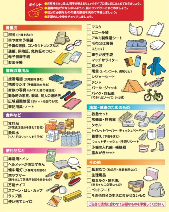 災害は、いつ・どこで・何があるかは予測できません。常に対応できるようにこの「備蓄品」は準備しておきましょう!みんなもこの機会に家族で勉強してみてはいかがでしょうか。