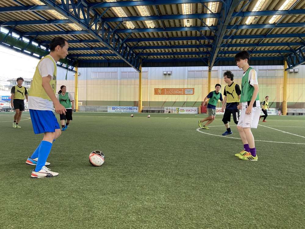 初めて会う選手たちが多いためアイスブレイクを行い、そこから気持ちを切り替えてトレーニング開始です。最初のウォーミングアップでは基本技術の【止める、蹴る、運ぶ】が全て入っているトレーニングを行いました。