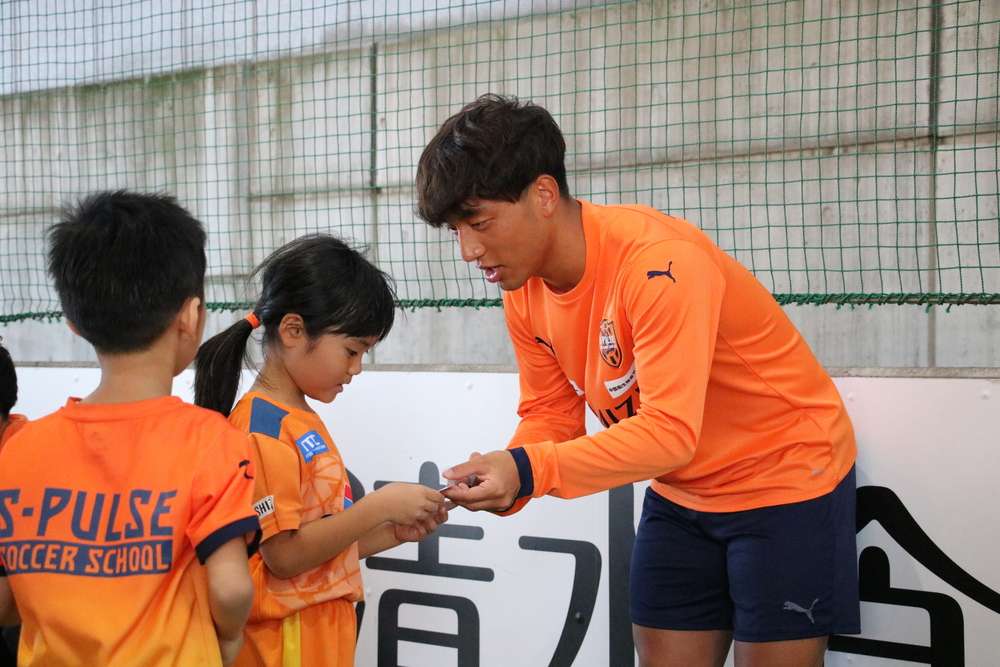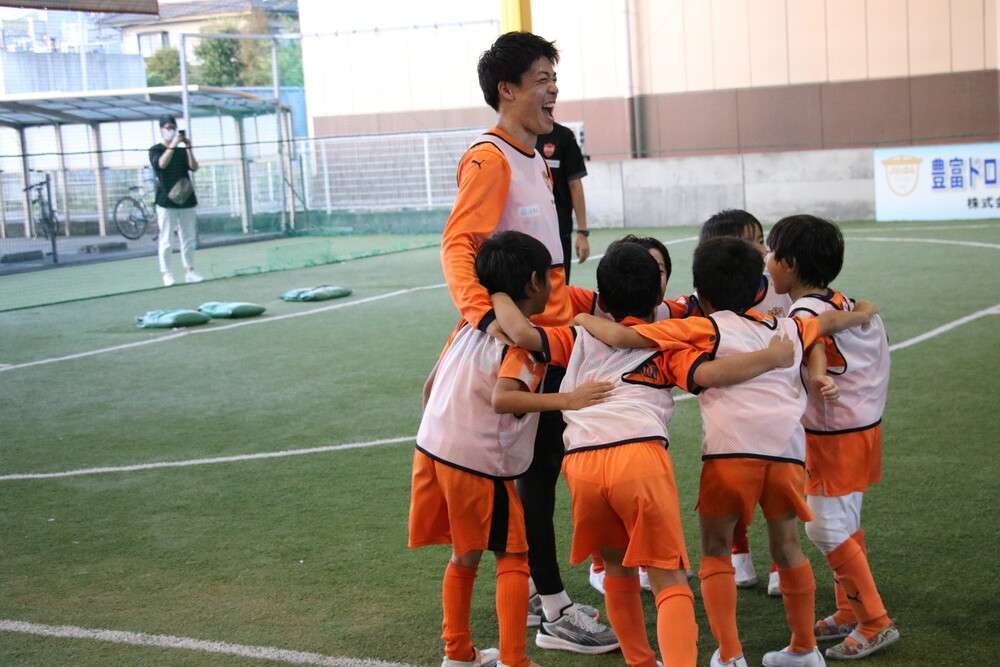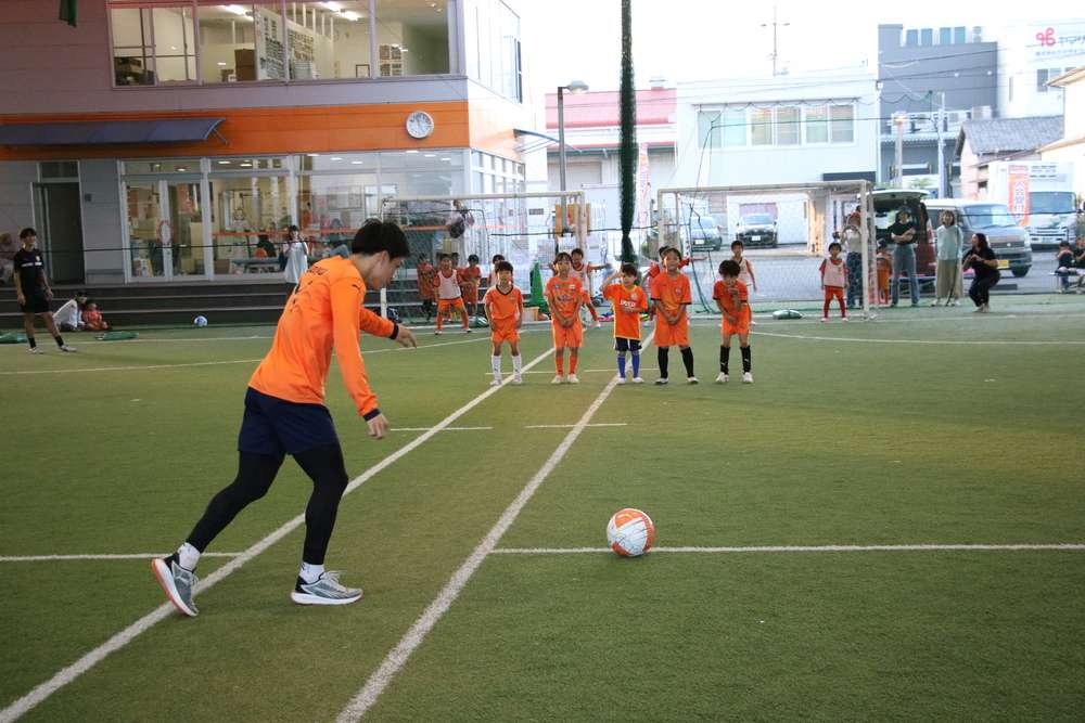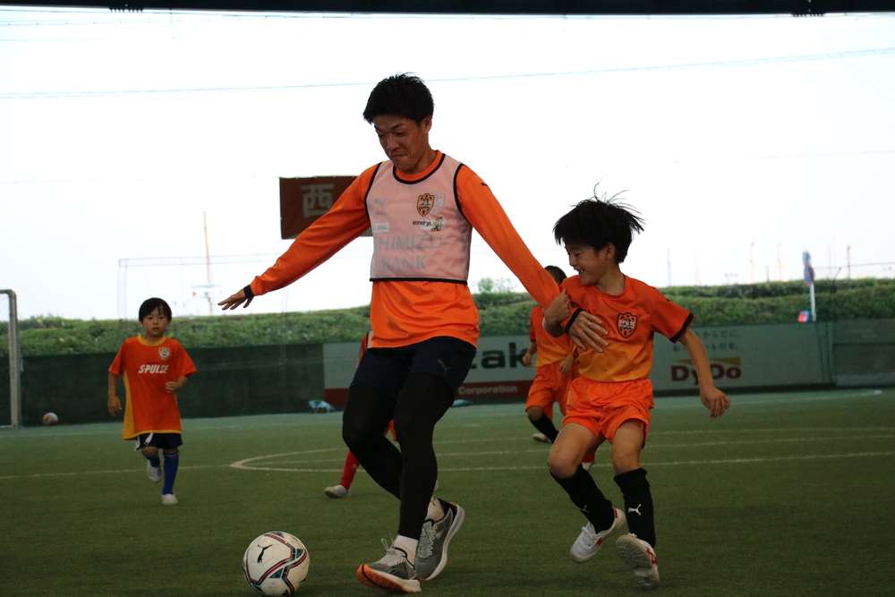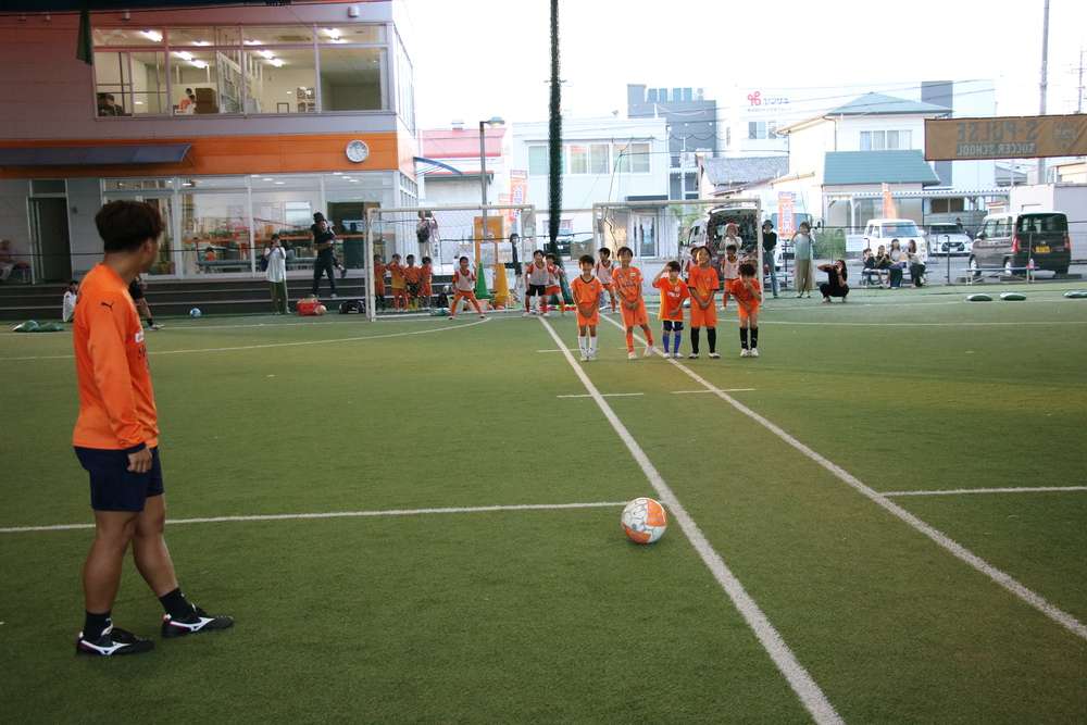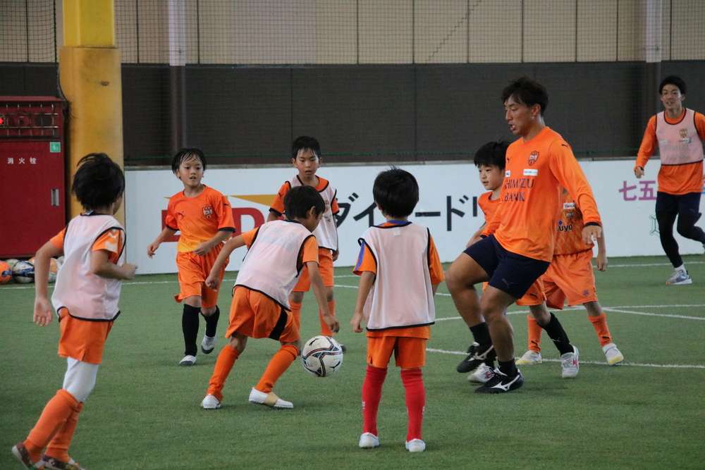 つい先日、トップチームの西澤選手、山原選手がS D F清水を訪れてくれました。キッズ(幼児)クラス、スペシャルチャイルドクラス(1、2年生)、ガールズクラスの子どもたちは両選手との交流に大喜びでした。X(旧Twitter)でご覧になった方もいらっしゃるかと思いますが、二人とも流石フリーキックの名手!子どもたちを壁にしてのキックでは見事に直接ゴールを決め、ものすごい盛り上がりでした!