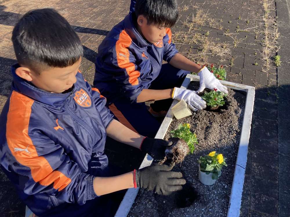 そして先日新チームのメンバーで地域貢献の一環として藤枝総合の周辺の美化活動に参加しました。花壇に花を植え、道路の草やごみを拾い改めてきれいに施設することの大切さを実感しました。