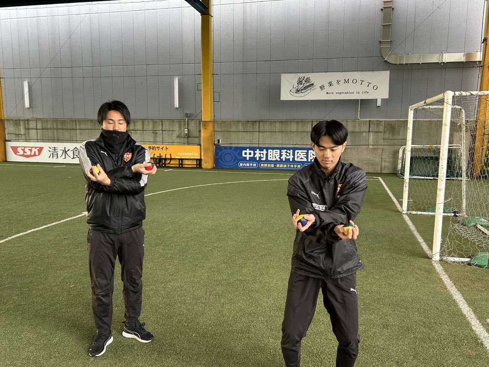 ライフキネティックとは、ドイツ生まれの「運動と知覚と認知を組み合わせたエクササイズ」です。誰でもできる簡単な動きを通じて脳に刺激を与え、脳機能の向上と神経の伝達機能強化を促します。(難しい言葉でしたね・・・)実は、エスパルスのトップチームもトレーニングに導入しています!