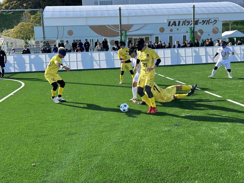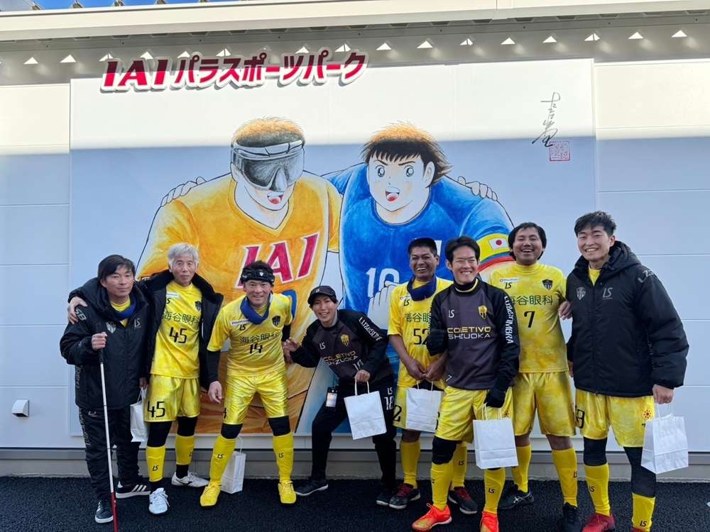 12月にはエスパルスのオフィシャルトップパートナーのIAI様が障がい者スポーツ施設を建設、清水区にIAIパラスポーツパークが完成しました!なんと、そのお披露目試合でブラインドサッカーの試合をしました!静岡にゆかりのあるブラインドサッカーのトッププレーヤー達が対戦相手でしたが、FCコレチーボ静岡も健闘し、0-1の惜敗。もりコーチも試合に出場し、今度は少しだけドリブルでボールを運ぶことができました!今度は楽しい気持ちと、悔しい気持ちもが出てきました。もっと上手になりたいと思うようにもなってきました!