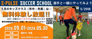 【SDF藤枝】★参加者募集★ 5月29日(水)『Kidsクラス&花まる学習会無料体験会~エスパルスの選手と一緒にやってみよう!~』及びKidsクラス通い放題開催のお知らせ