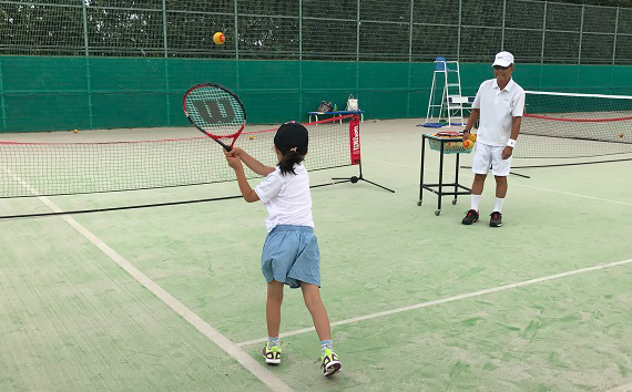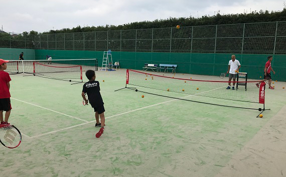テニス教室の参加者は、準備が終わると「入っていいですか?」「ラケットかりていいですか?」と子ども達は元気よくボールを打ち始め、教室開始前に一汗かいていました。