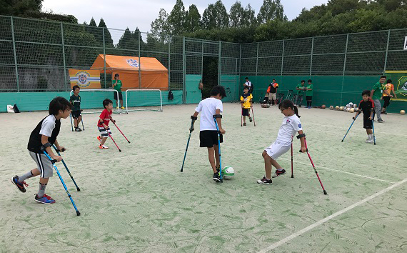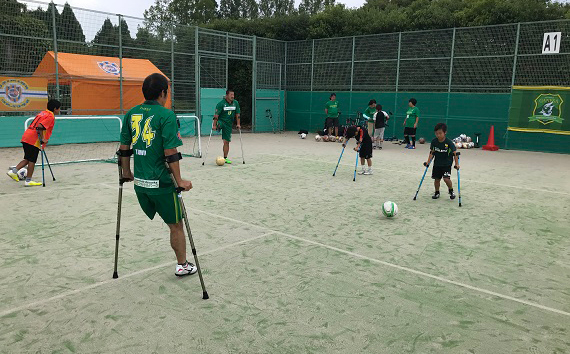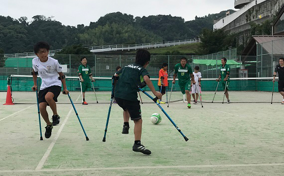 アンプティサッカーに体験した市川君から、『アンプティサッカーの選手はスピードがあるプレーをしていたのがすごかったです。僕たちより走っていました。クラッチを使うので腕が疲れたけど、楽しかったです。特にパス&ゴーの練習が楽しかったです。片足でボールを運ぶテクニックが勉強になりました。またやりたいです。』とのコメントもありました。