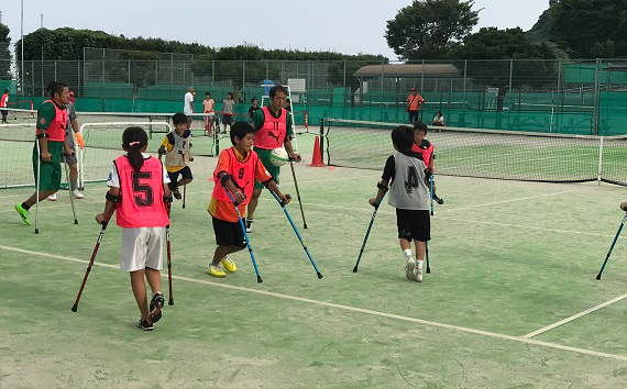 教室はアンプティサッカーとテニス教室に分かれて1時間行いました。アンプティサッカーもテニスも皆さん真剣にボールを追いかけていました。