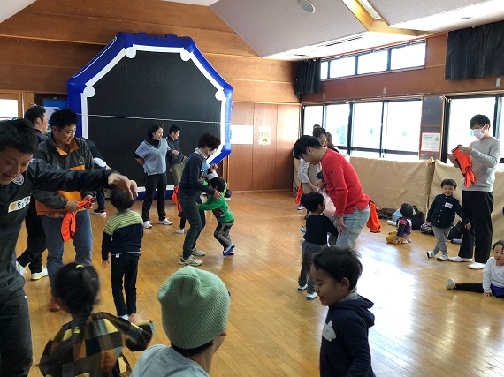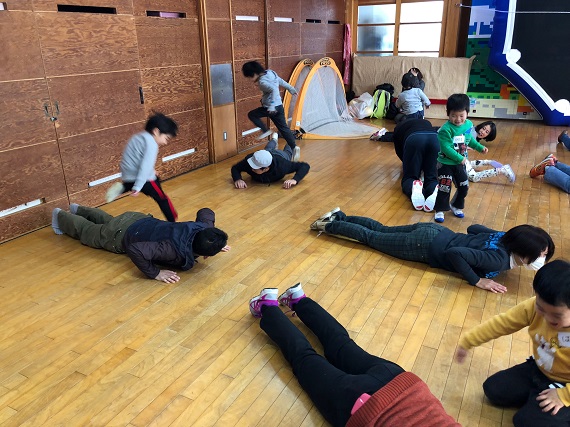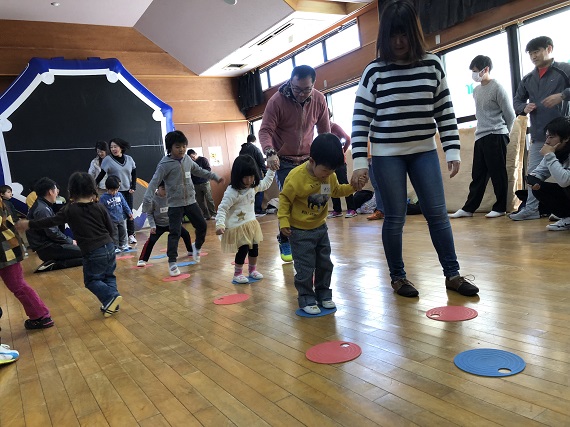 ご家庭でちょっとした時間に親子で遊べるメニュー紹介から、なぜこの運動が重要かなどの話も含め活動を進めました。