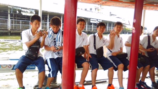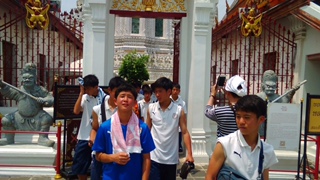 次は、涅槃像で有名な「ワットポー」です。タイで最も有名な観光名所のため、大勢の観光客でにぎわっていました。選手たちは涅槃像の大きさに驚きの声を上げていました。選手たちは、社会見学で来ていた地元の子供たちに、言葉が通じない中でも積極的に声をかけて、記念に写真を撮ってもらったりしていました。