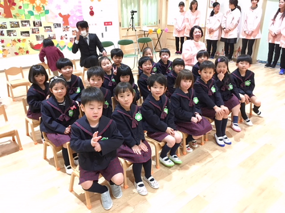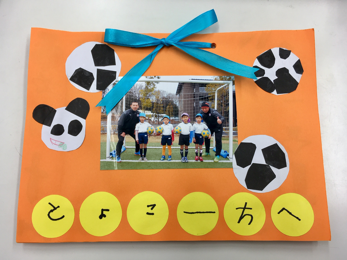 設立当初より、月に1度サッカー教室にて指導させていただき、早2年。園でも初めていう記念の式に参加させていただき、大変光栄に思います。また、4名の卒園児の皆様とは入園した時から指導させていただき、コーチ冥利に尽きる一日となりました。