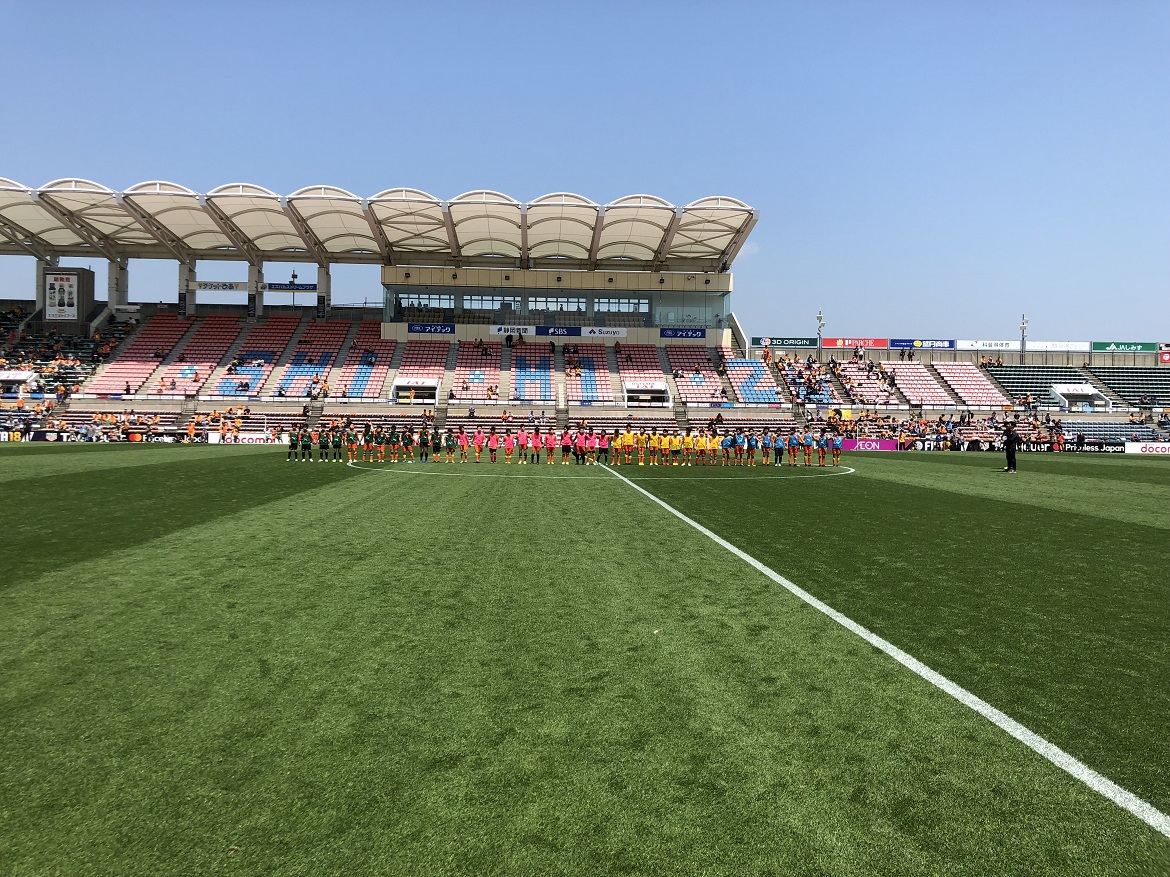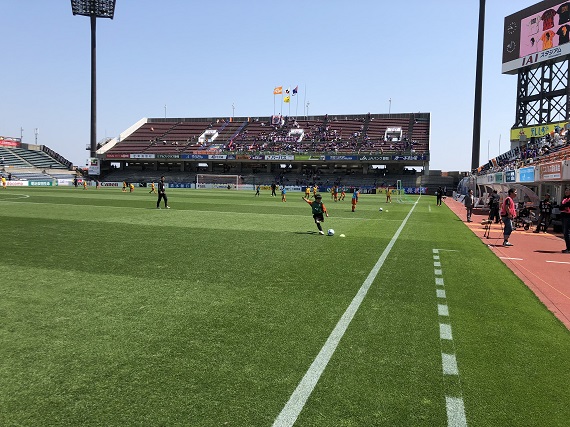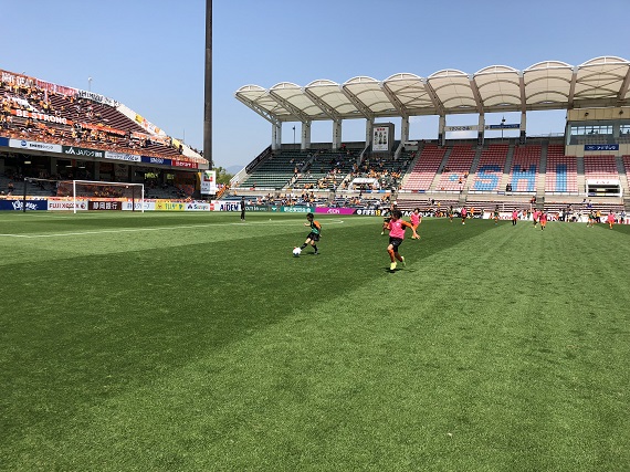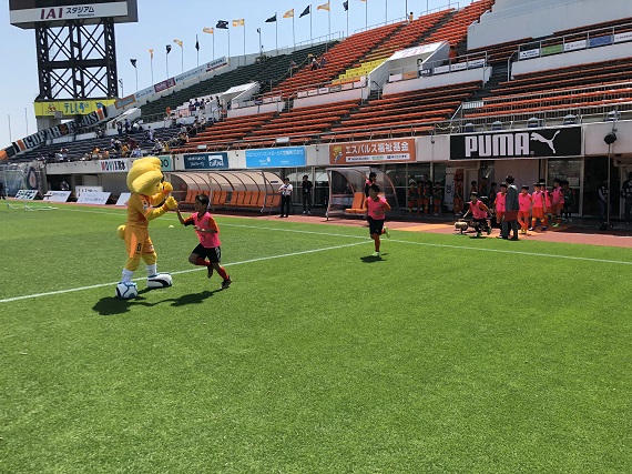 憧れのオレンジ戦士が『闘う』ピッチを使用するという事で子供たちも興奮しているようでした。ホーム、アウェー共にたくさんのサポーターの方がいて最高の雰囲気の中、試合ができました。