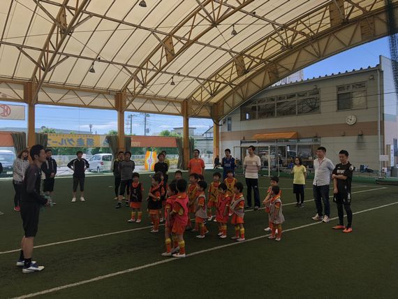 5月20日(日)にエスパルスドリームフィールド富士にて『親子サッカー教室』を開催しました。今回はキッズの部に「8組」、チャイルドの部に「9組」の親子に参加していただきました。