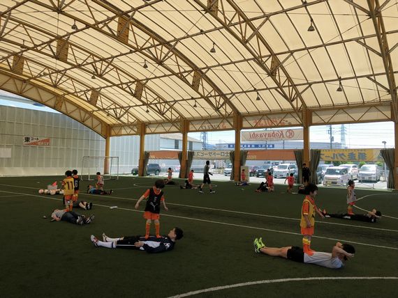最初は親子でペアになって協力しながら鬼ごっこや動きづくりのメニューを行いました。お父さんやお母さんと一緒になって声を掛け合いながら、和やかな雰囲気の中、楽しく体を動かしました。休憩をはさみ次はボールを使って手や足でのパス交換、ドリブル、1対1のボールキープなどのメニューを行いました。ここでも親子でコミュニケーションをとる場面が多く見受けられ、とても微笑ましかったです。