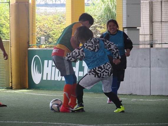 ゲームでは、お互いに声を掛け合いながら、シュートが決まるとハイタッチする姿もみられました。トレーニングした足裏でのコントロールも、ゲーム中に披露される場面が多くなってきたのではないかと感じました。