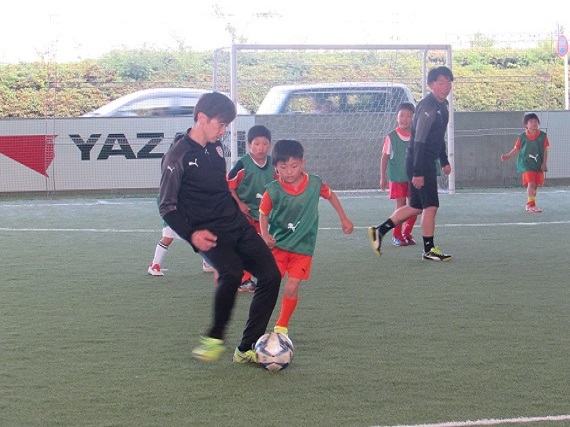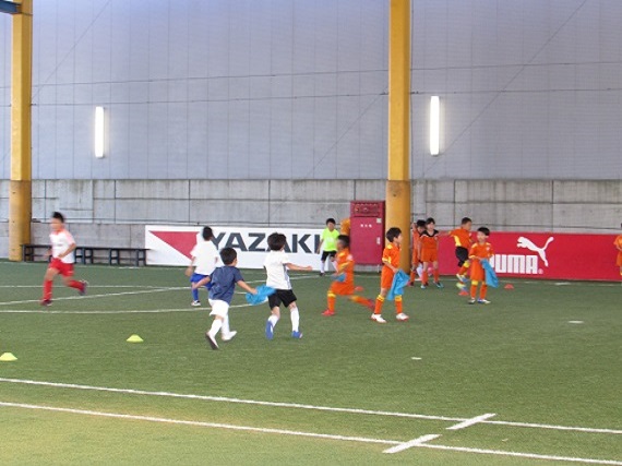 最後のゲームでは、各チームで声を掛け合い、楽しそうにボールを蹴る姿がありました。また、「コーチを抜きたい」「コーチチームに勝ちたい」といった闘争心あふれる声を聞くことができました。