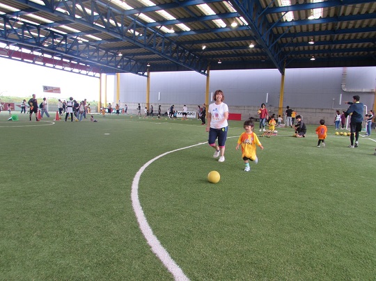 その後は6つのセッションに分かれたドリブルシュートを行いました。お父さん、お母さんと一緒に仲良くシュートを打って、子どもたちも笑顔がいっぱいでした。