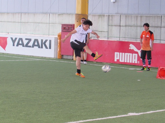 シュート練習ではボールを受ける前に予備動作を入れ、縦に突破するのか中に切れ込むのか、ゴールを決める為に考えながら練習を行いました。参加者の方は少し難しい練習にも積極的にチャレンジをしてくれ、素晴らしいシュートを見せてくれました。