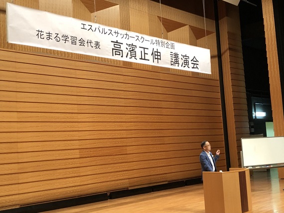 この日は花まる学習会代表の高濱正伸先生を講師としてお招きし、スクール生保護者を対象に、「エスパルスサッカースクール特別講演会」が行われたのでした。