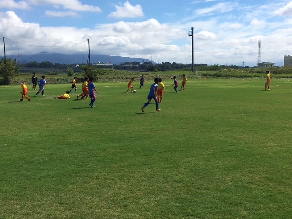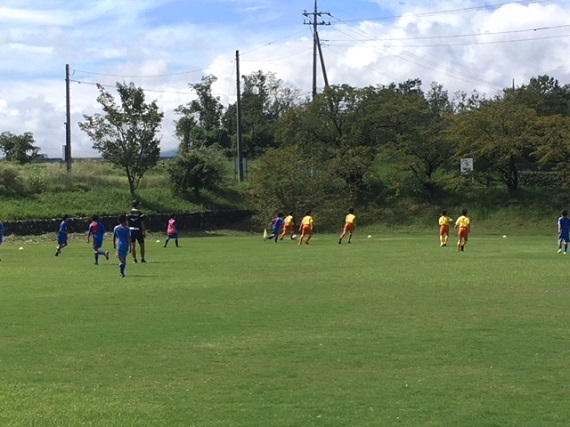 午前中に山梨県韮崎市の御勅使サッカー場にて、ヴァンフォーレ甲府サッカースクールと交流戦を行いました。