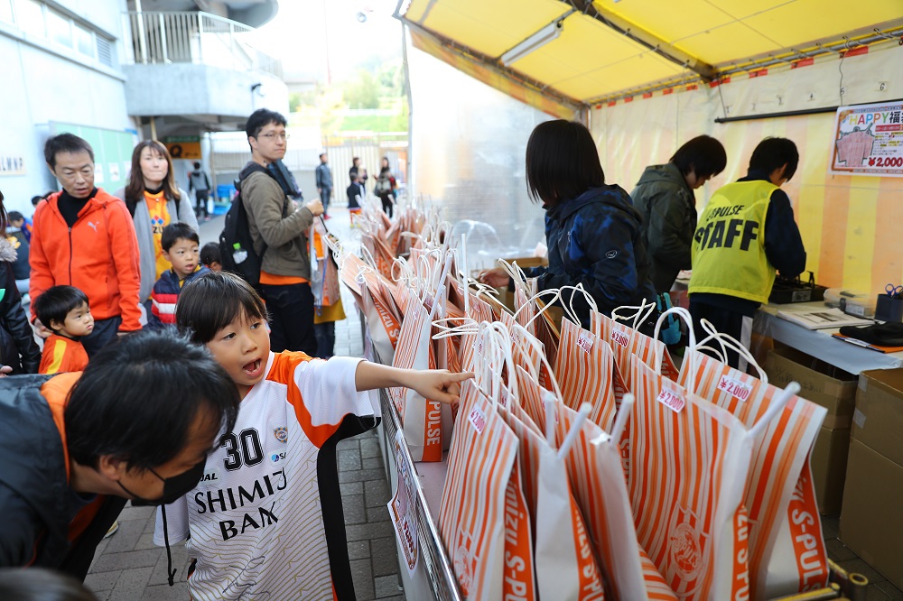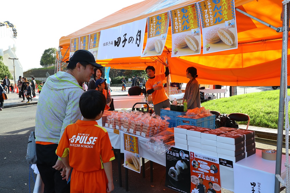 さらに、オレンジウェーブによるダンス教室、パルちゃんふわふわ、スタジアム見学や歴代ユニフォーム・エスパルス選手バスの展示等を行い、エスパルスをより身近に感じていただきました。物販コーナーではエスパルスグッズ福袋、グリコお菓子セットやSSKパスタセット、スクールアイテム、PUMAくじやがちゃがちゃなどを販売し、飲食コーナーには鐘庵様、ストリートスタイル様、ケバブファクトリー様、ねこや様、ヒバリヤ様といったスタジアムグルメでも人気のお店にご出店いただきました。