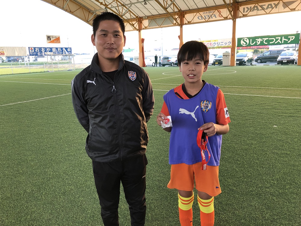 交流戦の結果は、静岡エリアが2勝1敗3分けで勝ち点9、藤枝エリアは1勝2敗3分けで勝ち点6。よって今回の勝者は静岡エリアとなりました。点差が僅差の試合、引き分けの試合も多くあったと思います。点を入れられても点を取り返しにいこうという姿はどのチームにも見られ、とても良かったと思います。少し遠くの位置でもシュートを積極的に狙い、クロスからのシュートなど素晴らしいゴールもたくさんありました。