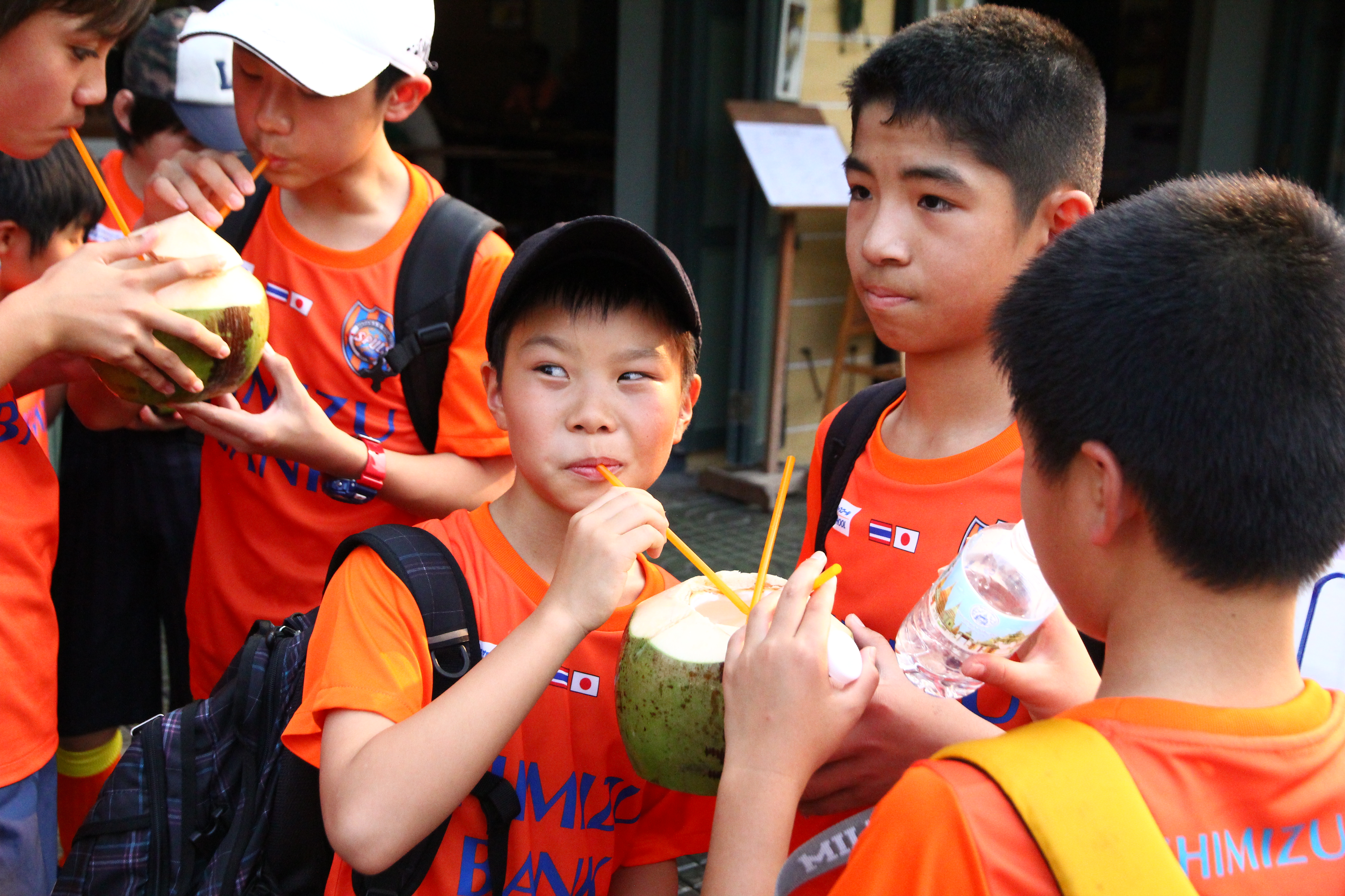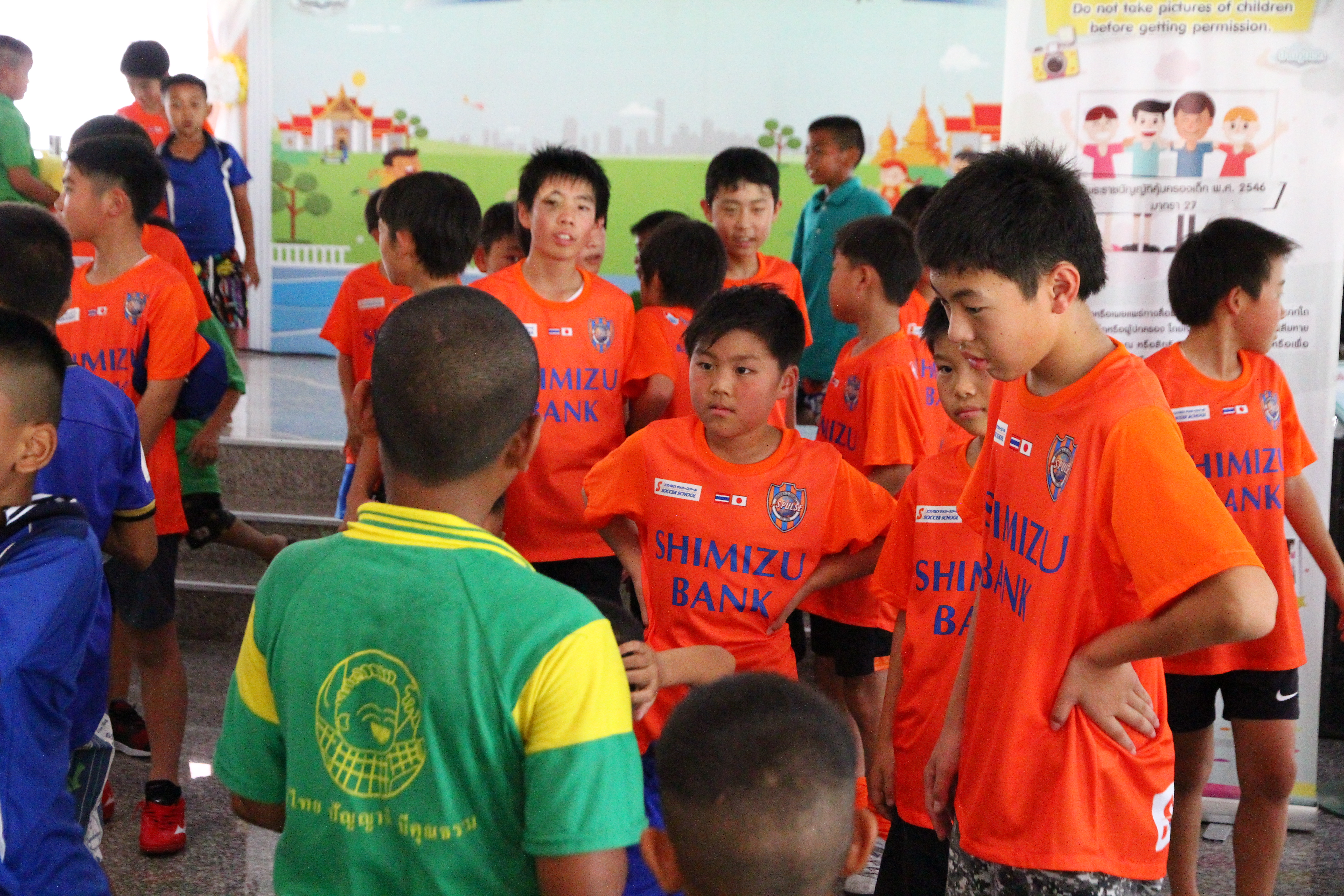 2日目の午前中はバーン プーム ウェートという児童養護施設を訪問。施設に入居している子供たちとフレンドリーマッチを行いました。この施設には、昨年、村田和哉選手と飯田貴敬選手が訪れ、サッカークリニックを開催した施設で、1年ぶりに訪れました。施設長によると、「1年前にプレゼントしたシャツを子供たちは今でも大切にしており、テレビでエスパルスの試合があると、みんなが応援しています」とおっしゃっていました。