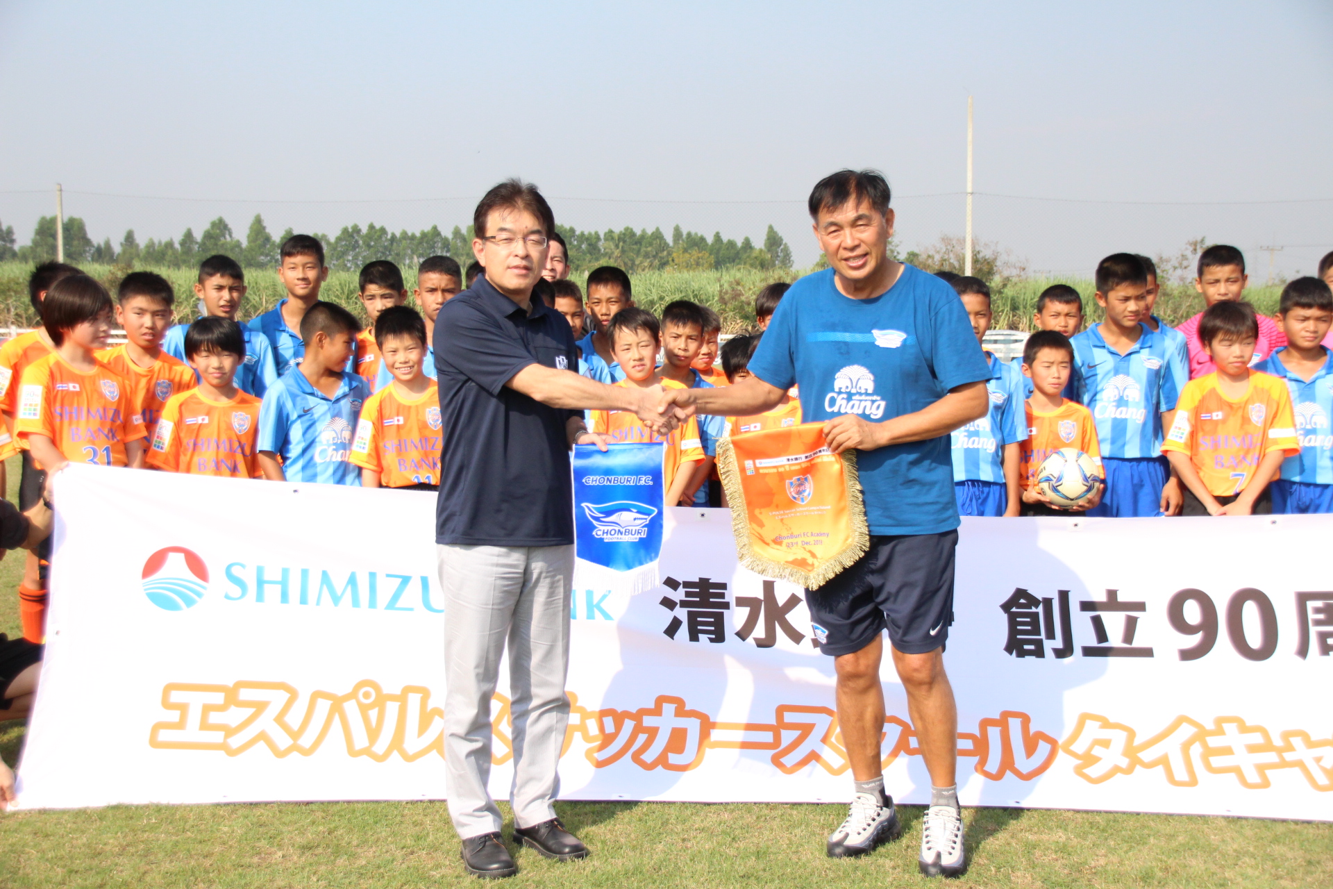 チョンブリーFCのテクニカルダイレクター、ビタヤ氏はG大阪の前身、松下電器産業で選手として活躍、その後、ガイナーレ鳥取で監督として指揮を振るった方で、当日グラウンドで我々を待ってくれていました。そのビタヤ氏がコンセプトとして掲げる、丁寧にボールを繋いで、サイドで数的優位を作って崩し、クロスから得点という形に、1本目は体を張った守備で何とか守り切り、0-0。しかし、2本目以降は終始相手にボールを保持される時間が続き、6本合計で0-16と大敗を喫してしまいました。しかし、30度を超える炎天下の中、最後まで走り回り、何とか1点を奪おうとあきらめない姿勢は見せられたと思います。