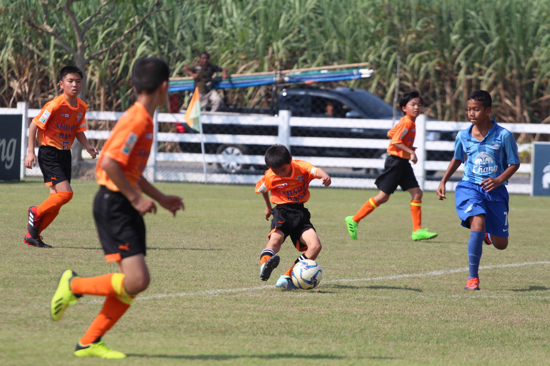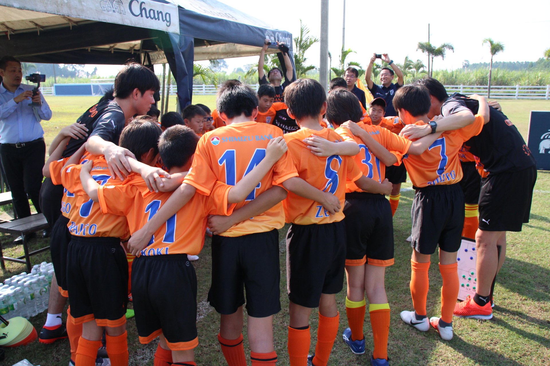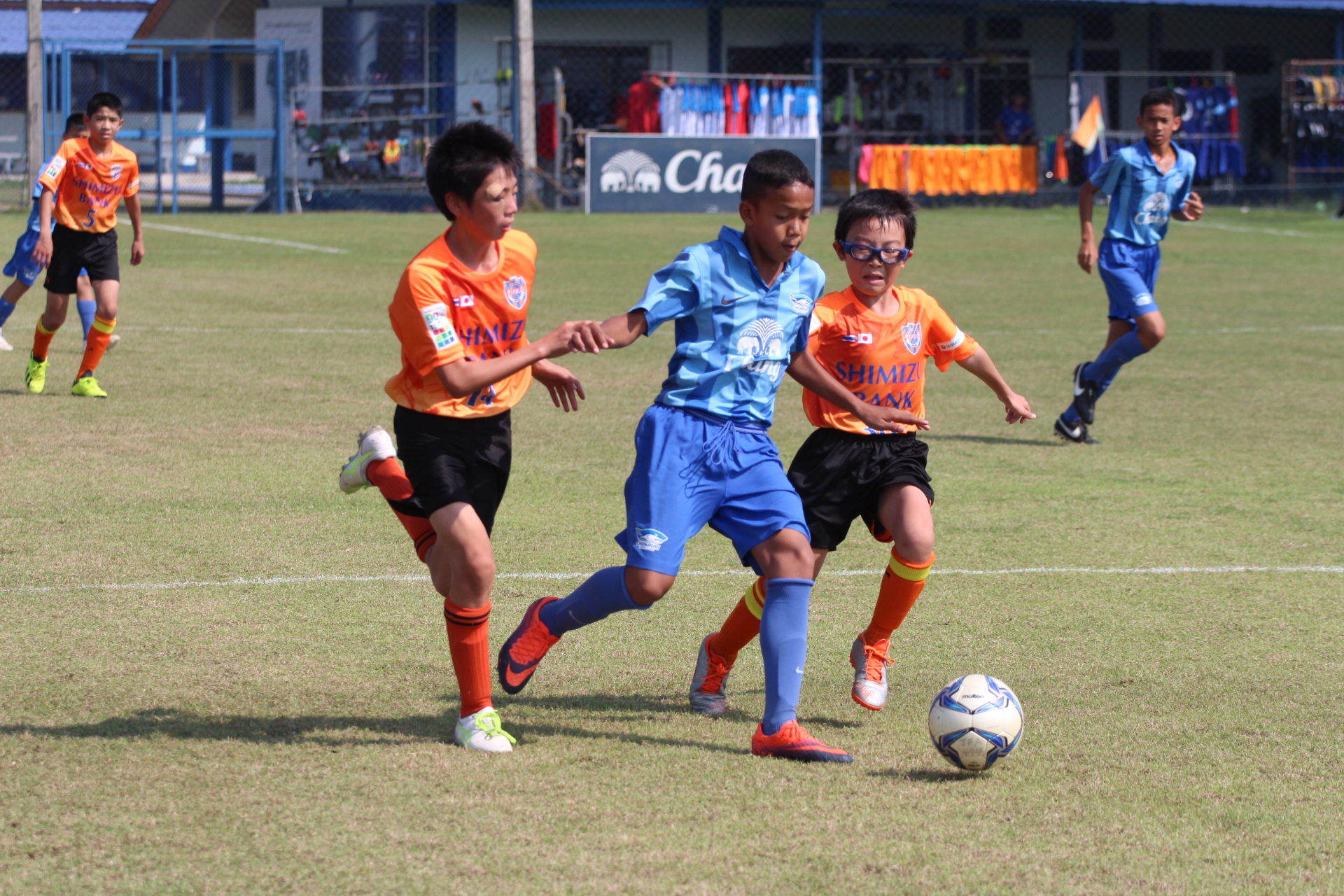 12月23日、キャンプ3日目の午前中はチョンブリー県に移動し、タイの強豪、チョンブリーFCアカデミーU-13と対戦しました。11歳から18歳までがアカデミー敷地内で寮生活を送り、サッカー漬けの毎日を送っている10歳から12歳の選手たちを相手に15分×6本のフレンドリーマッチを行いました。