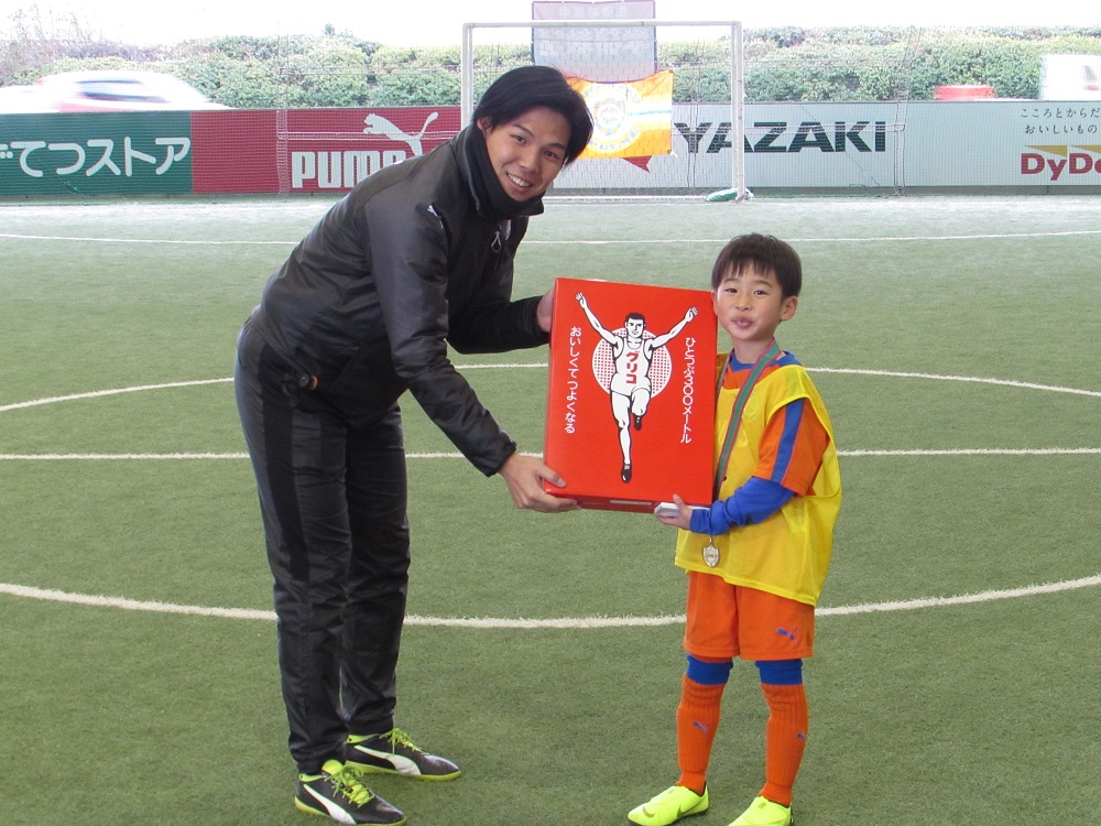 閉会式・表彰式で今大会の優勝チーム、準優勝チーム、MVP賞を発表し、大会パートナーであるグリコ様よりMVPの選手に豪華景品が、また参加した子どもたち全員に参加賞のグリコのお菓子がプレゼントされました。