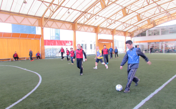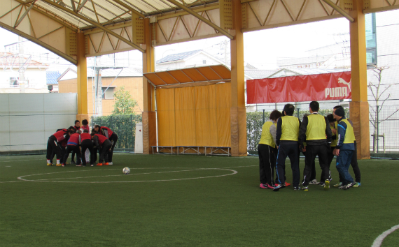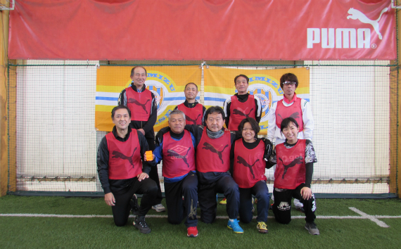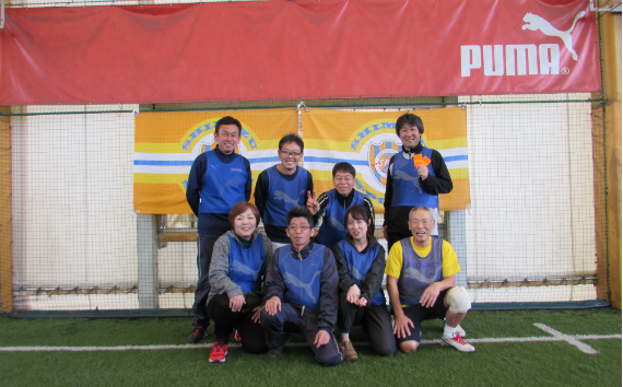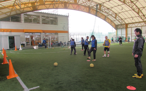 試合前には、ドリブルの仕方(通称:ペンギン歩き)、ボール交換ゲーム、キックゲーム、シュート練習を参加者同士で楽しく体験していただきました。普段サッカーをされていない方も上手にボールを運ぶ・止める・蹴るができるようになり、またサッカー経験者の方が未経験の参加者にアドバイスをおくるなど、コミュニケーションを取りながら楽しく行う事ができました。